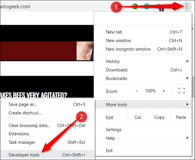 در گوگل کروم و مایکروسافت اج کرومیوم ویژگی وجود دارد که با آن می‌توانید بدون نیاز به هیچ افزونه‌ای از صفحات سایت‌ها اسکرین‌شات کامل یا scrolling screenshot بگیرد.گوگل کروم یا مایکروسافت اج کرومیوم را بازکنید از بالای صفحه سمت راست‌روی سه نقطه … کلیک کنید و سپس گزینه‌ی More Tools را انتخاب کنید. حالا وارد گزینه‌ی Developer Tools شوید. برای راحتی کار می‌توانید از کلیدهای ترکیبی Ctrl+Shift+I در ویندوز یا Command+Shift+I در مک استفاده کنید.